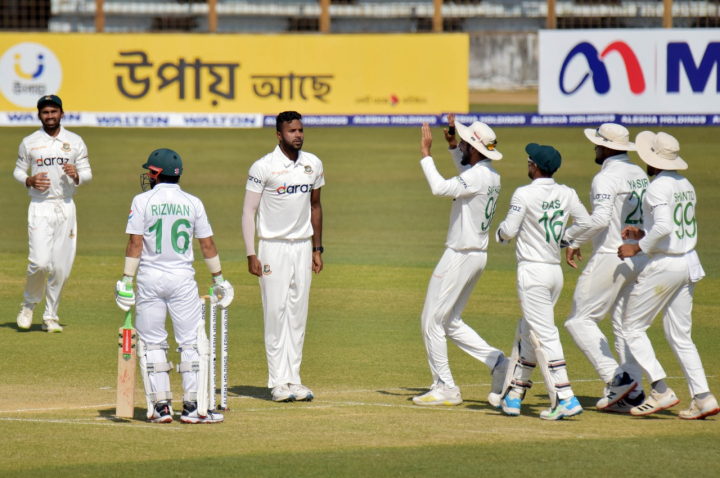দিনের প্রথম ওভারেই ২ উইকেট নিয়ে যে সুরটা বেঁধে দিয়েছিলেন তাইজুল, অন্য প্রান্ত থেকে তাতে যোগ্য সঙ্গত করেছেন এবাদত। দিনের প্রথমে ৪ ওভারের যে স্পেল করেছিলেন, তাতে রান দিয়েছিলেন মাত্র ৩! তাঁর ২২ বলেই কোনো রান নিতে পারেননি পাকিস্তানি ব্যাটাররা, মাত্র দুটি বল করেছিলেন গা কিংবা পা বরাবর। বোলিং মার্কে ফেরত যেতে যেতে হাতের যে ভঙ্গি করছিলেন, তাতে বোঝা যাচ্ছিল, ব্যাটসম্যানকে ড্রাইভ করিয়ে স্লিপে ক্যাচ তোলাটাই উদ্দেশ্য। কিন্তু পাকিস্তানি ব্যাটসম্যানরা সে ফাঁদে পা দেননি বলেই উইকেটটা পাননি।